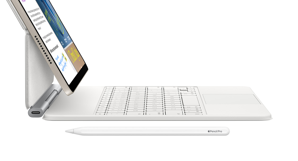 iPad Air attached to Magic Keyboard for iPad Air and Apple Pencil Pro