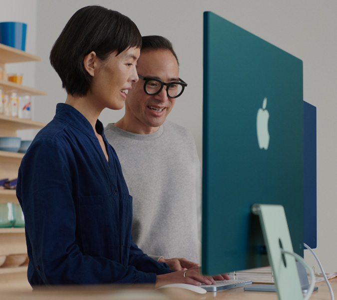 Our hardware and software are designed together. That integration is what enables amazing features like Center Stage, Spatial Audio, and “Hey Siri.” For pro workflows, macOS supports reference modes and fine-tune calibration so you can match industry standards — whether it’s HD and SD video or broader uses such as photography, web development, design, and print.