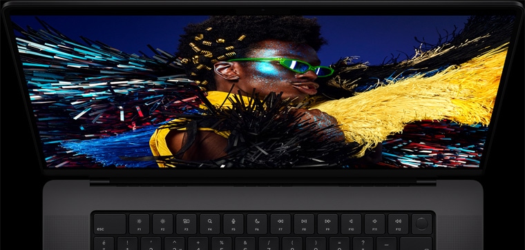 1600 nite kadar parlaklığa, 1.000.000:1 kontrast oranına ve 120 Hz’e kadar yenileme hızına sahip Liquid Retina XDR ekran.