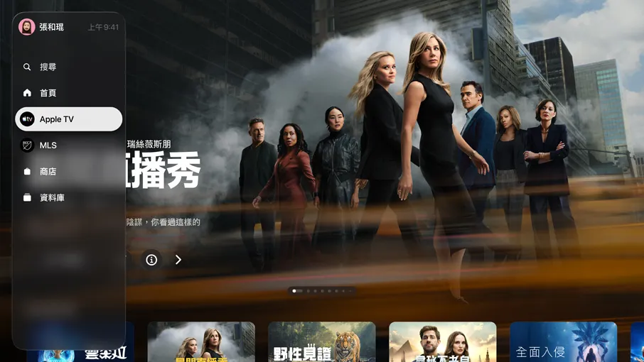 Apple TV 4K 主畫面上顯示 Apple TV 電視節目《戰酋》。