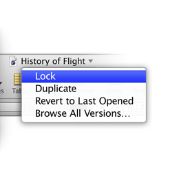 如果你對目前的內容感到滿意,可以鎖住你的文件以避免無意間產生的變更。如果你嘗試變更鎖住的文件,Lion 會詢問你是否想爲文件解鎖,還是要把它當成新文件的模板。