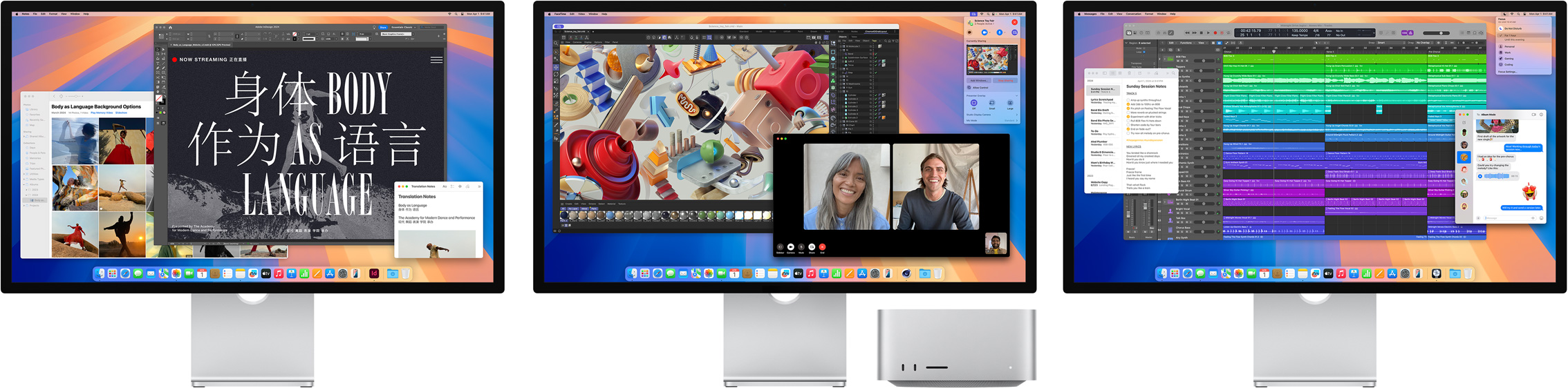 我們的硬體與軟體相輔相成,正是這樣的整合設計,才能實現「人物居中」、「空間音訊」與「嘿 Siri」等令人驚歎的功能。針對專業工作流程,macOS 則可支援參考模式與微調校正,無論是 HD 與 SD 影片,還是攝影、網頁開發、設計及列印等更廣泛的用途,你的創作都能符合業界標準。