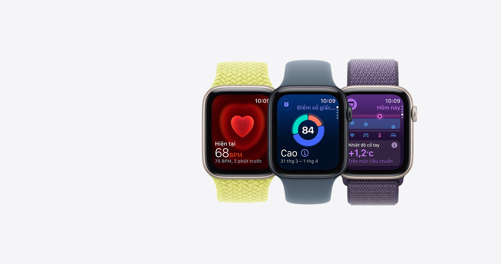 Nhận thông tin chuyên sâu hữu ích về sức khỏe của bạn, chỉ cần đeo Apple Watch SE 3. Cảm biến nhiệt độ cổ tay mới cung cấp thông tin chuyên sâu hơn trong ứng dụng Sinh Hiệu và các dự đoán thời gian rụng trứng qua dữ liệu hồi cứu trong ứng dụng Theo Dõi Chu Kỳ. Bạn cũng sẽ nhận được điểm số giấc ngủ hàng ngày và thông báo về chứng ngưng thở khi ngủ có thể xảy ra. Chưa bao giờ việc cập nhật thông tin lại dễ dàng đến thế.