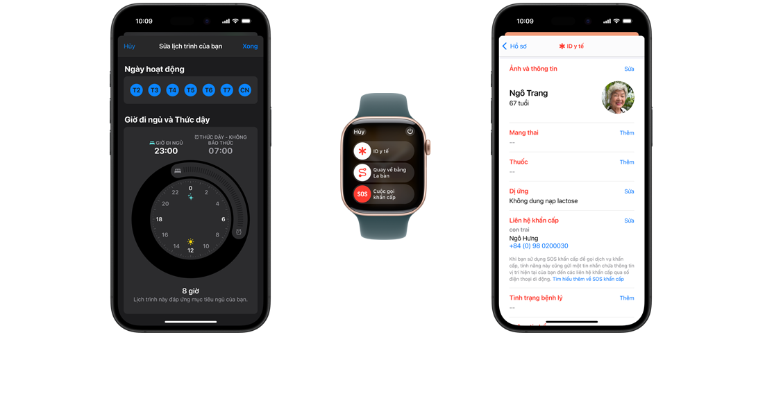 Trên iPhone và Apple Watch, nhân viên hỗ trợ khẩn cấp có thể nhanh chóng truy cập ID Y Tế với các thông tin quan trọng như dị ứng, nhóm máu, liên hệ khẩn cấp và hơn thế nữa.